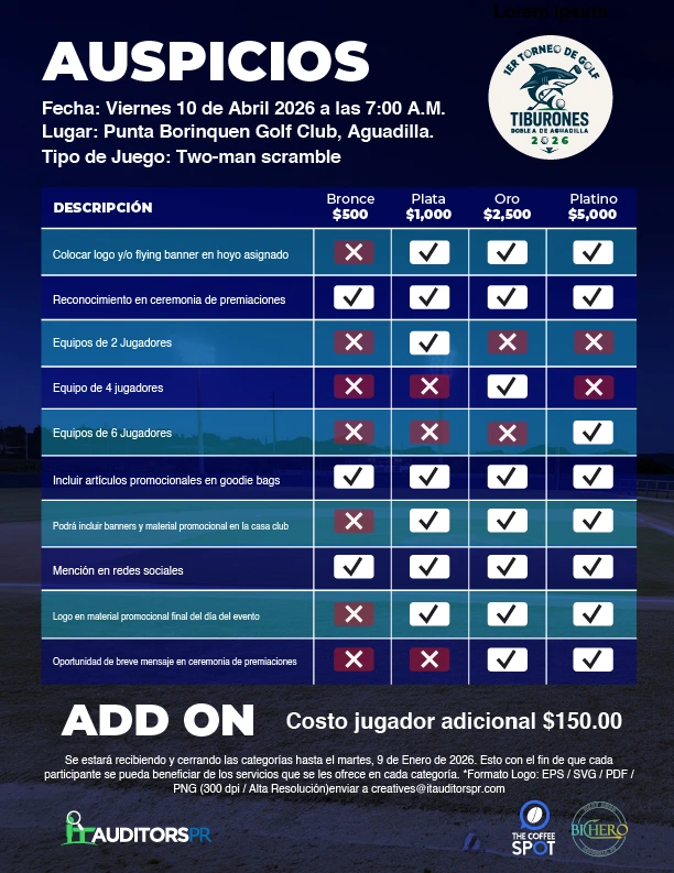 Early Registration for 1er Torneo de Golf Tiburones de Aguadilla Doble A